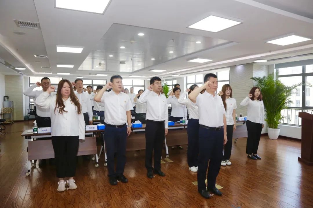 夏聞迪帶領(lǐng)預(yù)備黨員入黨宣誓,全體黨員重溫入黨誓詞。