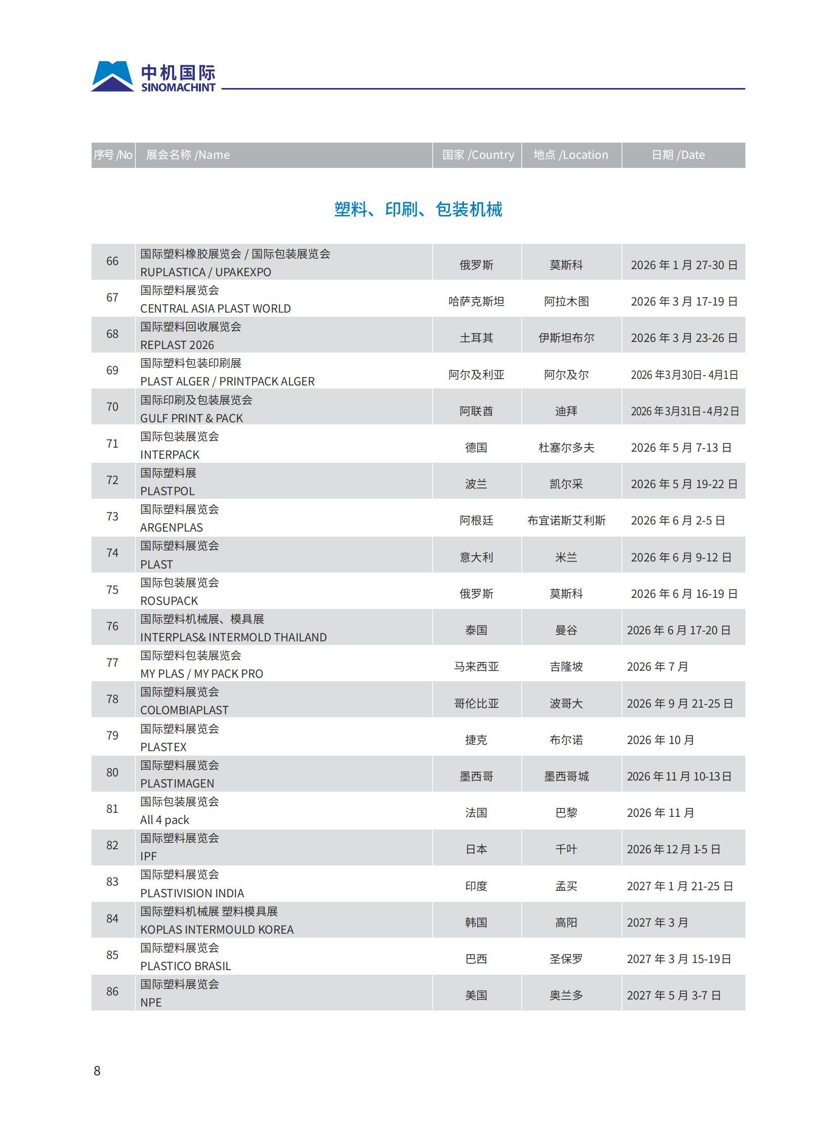 中機(jī)國際展覽網(wǎng)絡(luò)遍布全球100多個(gè)國家、300多個(gè)城市,累計(jì)舉辦3300余次國際展覽;深度參與進(jìn)博會(huì)、廣交會(huì)、服貿(mào)會(huì)、東博會(huì)、中非博覽會(huì)等重大展會(huì),助力多邊經(jīng)貿(mào)合作與國際交流。